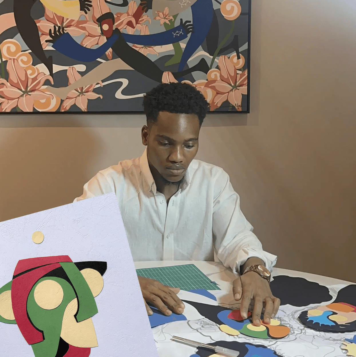 Working primarily with paper, participants will create small collages by arranging cut fragments into expressive figures or compositions. The session encourages intuition and experimentation rather than perfection, allowing participants to respond freely to shapes and colours.