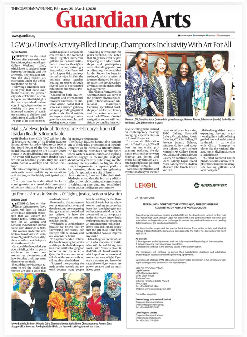 Visibility is necessary for a visual industry to thrive, so when Lagos Gallery Weekend (LGW) Director, Sunshine Alaibe was faced with the decision to let the initiative die out after its first edition, or to take it on and expand it, she chose the latter. From the 28th to 30th of March 2025, Lagos came alive for the second edition of LGW themed Discover Lagos Through Art, a movement that spotlights galleries and cultural institutions whose hard work often goes unnoticed. With twenty art galleries participating, including Rélé, O’DA Art, Sachs Gallery, Kó Art Space, and five cultural institutions including CA, JK Randle Centre, Yemisi Shyllon Museum, Grillo Art, Alliance Francais and Goethe Institute, the weekend was a celebration of art in its various forms.